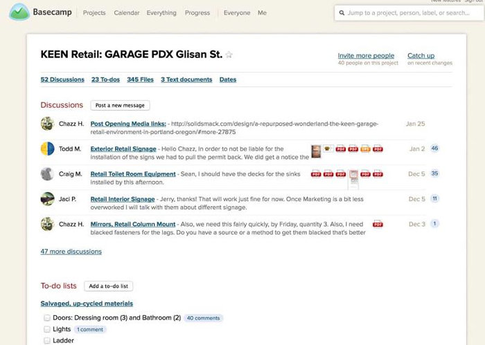 Services like Basecamp are great sites to use for projects, as it makes it easy for people to communicate and visually see which tasks they need to do or have completed.